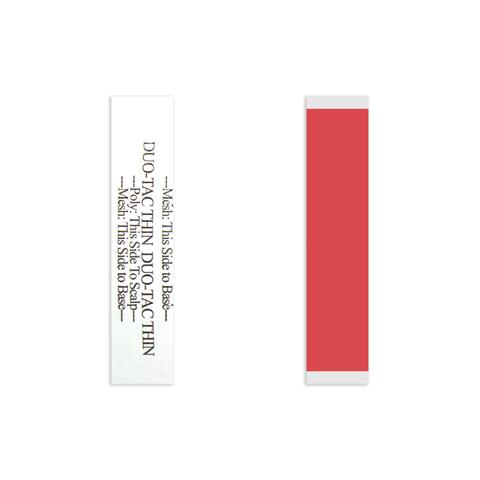 Esta es una versión delgada de nuestra cinta Duo-Tac. Duo-Tac fue diseñado para una fácil limpieza y poco residuo con el acabado opaco de una cinta frontal de encaje. Una opción muy popular entre nuestros clientes de extensiones de cabello. Los revestimientos son rojos y blancos, pero la cinta real es clara.